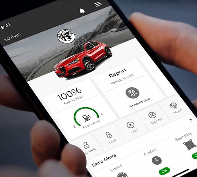 Los servicios Alfa Connect proporcionan una experiencia a bordo distintiva y le ayudan a gestionar su vehículo Alfa Romeo desde cualquier lugar, gracias a la aplicación Alfa Connect21.