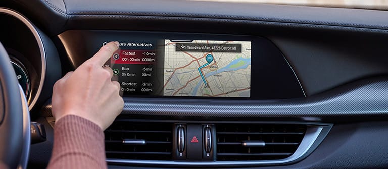 Belleza impulsada por la tecnología: el Alfa Romeo Stelvio cuenta con un ecosistema de servicios digitales integrados para garantizar la mejor experiencia de conducción.